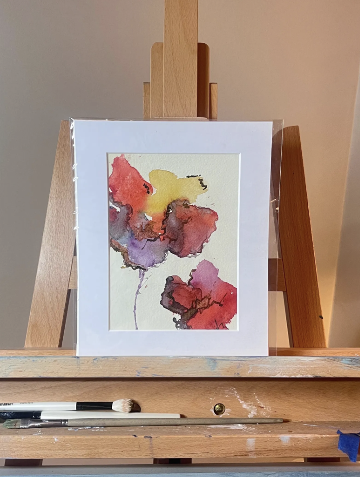 ORIGINAL WATERCOLOUR AND INK FLORAL PAINTING